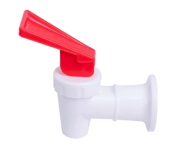 Grifo blanco con pestaña en rojo indicado para el agua caliente. Fabricado en polipropileno. Fácil cambio mediante rosca.