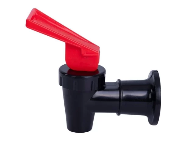 Grifo negro con pestaña en rojo, indicado para el agua caliente. Fabricado en polipropileno. Fácil cambio mediante rosca.