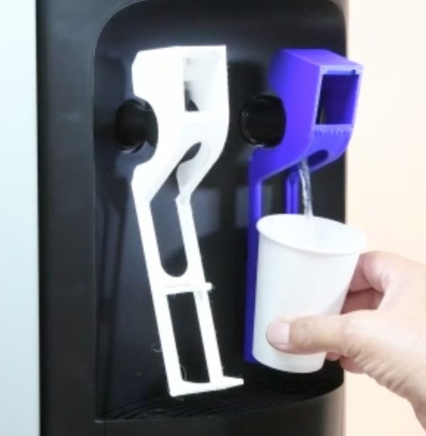 Palanca de fácil montaje para incorporar a tu fuente de agua con grifos. Este sistema permite de una manera rápida y económica, servir el agua sin contacto alguno. Olvídate de sistemas costosos, ahorra tiempo y dinero.